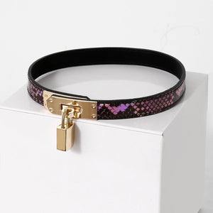 This 2-in-1 collar and handcuff set is perfect for those seeking both luxury and restraint. Its snake skin-patterned leather adds an exotic flair to your BDSM play while ensuring comfort and security, making it an essential addition to your intimate adventures.