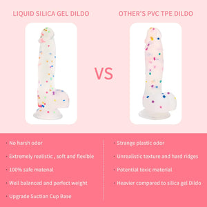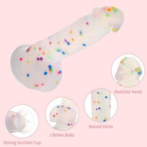 With its colorful confetti pattern and realistic texture, this dildo feels like real skin. The soft, smooth surface ensures maximum comfort and pleasure.