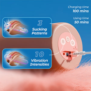 Our product features easy-to-use buttons for suction and vibration control, so you can effortlessly adjust settings during use. With a quick charging time of 100 minutes, you'll enjoy up to 50 minutes of intense pleasure. The design ensures maximum convenience, giving you more freedom to focus on your satisfaction.