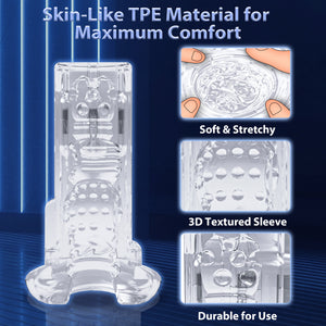 Easy to Remove This male masturbator is made of high-quality TPE material, the surface is covered with soft and bumpy texture. Lubricant is added during use, the friction force is greater, the thrust is greater, and the visual effect is completely real. Sex toys bring you the pleasure of friction and stimulation. Perfect fit for the most amazing feeling with every use.