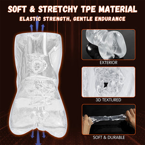 Realistic Texture Indulge in an incredibly realistic experience with this male masturbator sex toy. Designed with attention to detail, this male toy features a textured tunnel that perfectly replicates the sensations of intimacy. Every bump delivers maximum pleasure and stimulation, making your solo sessions feel like the real thing. The realistic texture of this adult toy pocket pussy for men ensures you'll experience unparalleled satisfaction with every use.