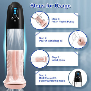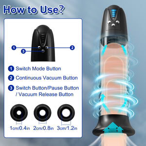 Dual Water SPA Massage Male Sex Toys This penis pump has an original IPX7 waterproof function, which allows you to experience the water spa massage technique. You can first add cold water into this male masturbator, then add warm water, two different temperature water mixed together, the amalgamation of ice and fire, double stimulation of your nerve sensitivity, constantly massaging the surface of the skin, let you reach an unprecedented orgasmic feeling.
