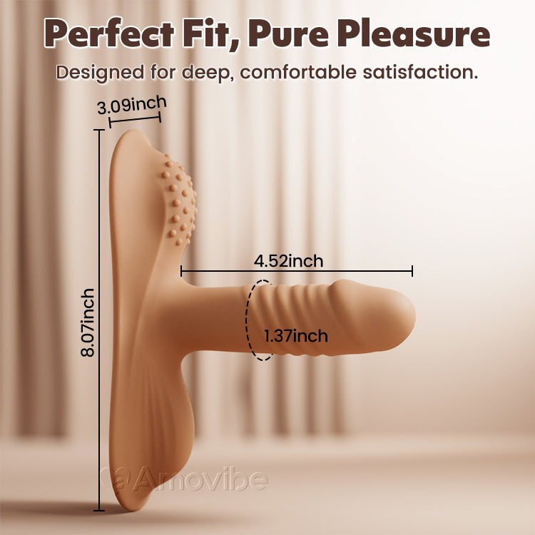 Measuring 3.09 × 4.5 × 1.37 inches, this ride-on vibrator is designed to fit comfortably and naturally, offering just the right fullness and support whether you’re new or experienced.
