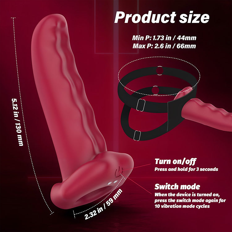Designed for convenience, our finger sleeve has a vibrator size of 5.12 inches (130 mm) and a glove diameter of 2.32 inches (159 mm). The adjustable strap ranges from 1.73 inches (44 mm) to 2.6 inches (66 mm), ensuring a perfect fit. To power on or off, hold the button for 3 seconds. Once on, pressing the button cycles through 10 vibration modes, offering a versatile experience. This design is perfect for both solo and partnered play.