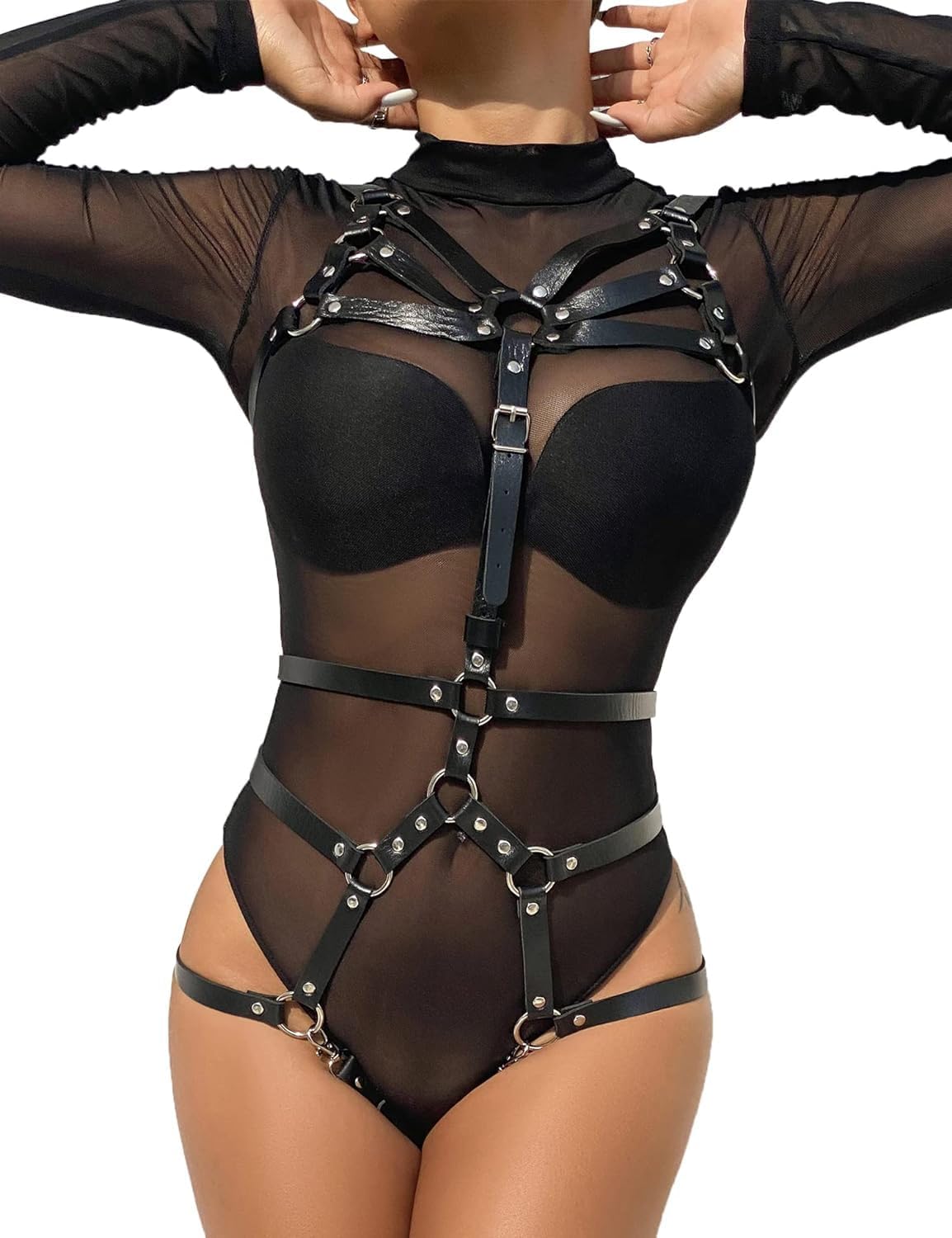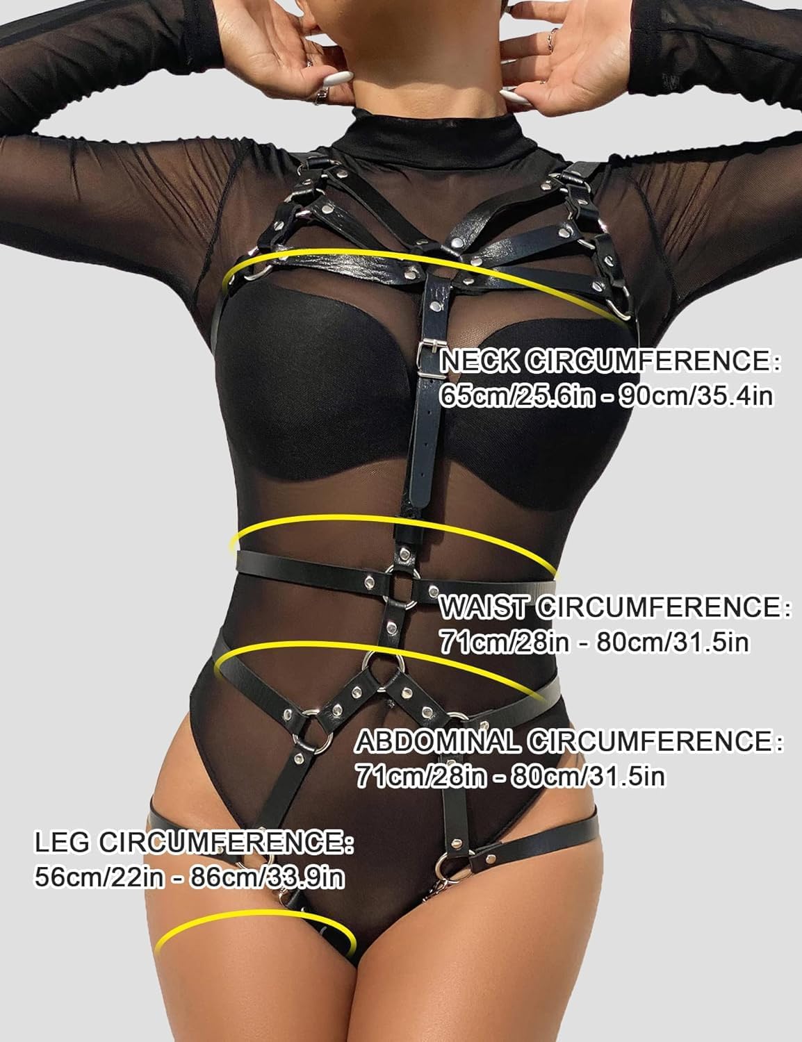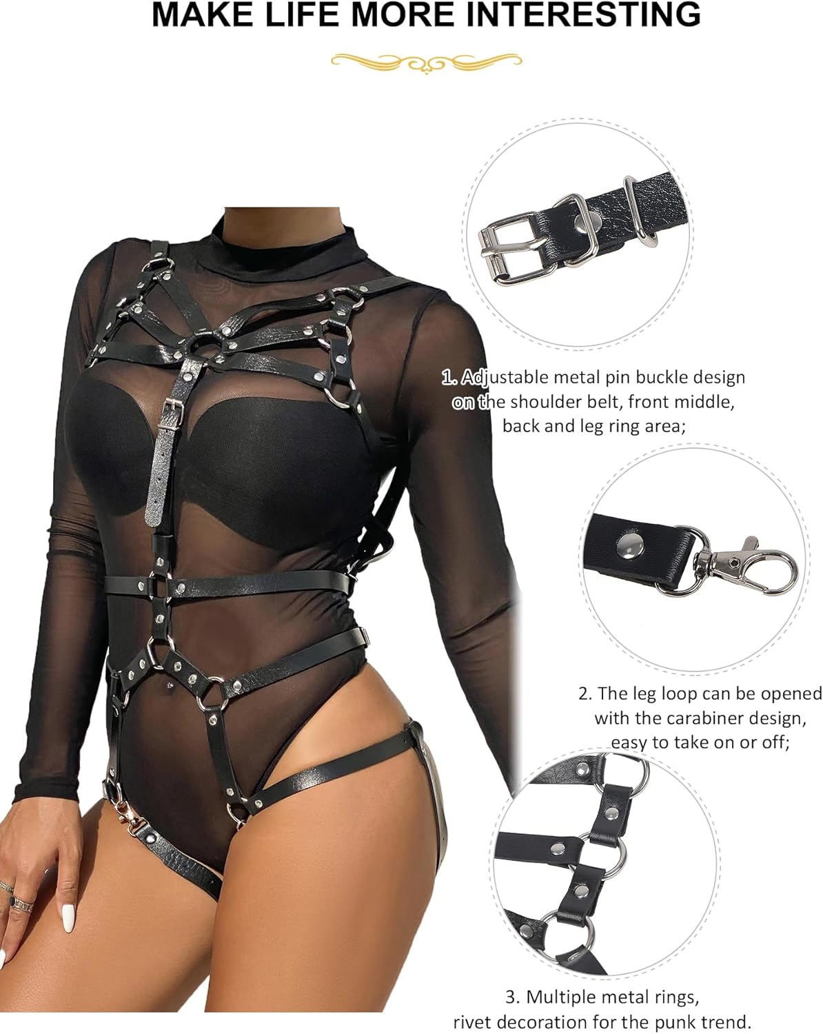 Punk Leather Body Harness for Women Full Strappy Chest Harness Gothic Waist Belts Body Accessories for Women
